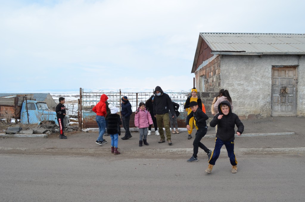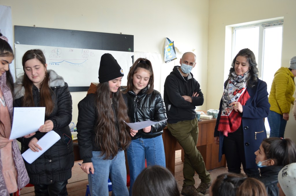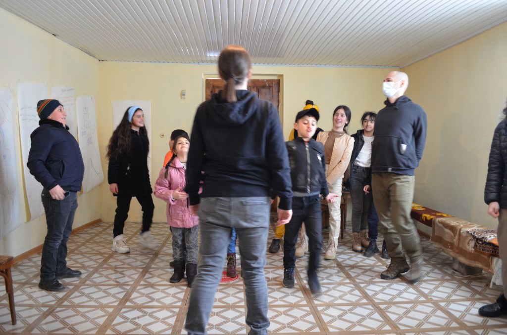 With their project “New Voices For Children Theatre“ started a campaign to encourage Georgian writers to write challenging new plays for children. This project set the beginning of their collaboration with the Georgian authors Alex Chigvinadze and Mariam Tchantchaleishivili. Together with children from Alkhalkalaki and Mestia the two authors wrote two new plays for Aitsona Daitsona. From February till May 2022, the authors and the Aitsona Daitsona visited the children at those two places, ran theatre and writing workshops with them, and discussed topics and issues that the children wanted to see on stage. After the visits the authors wrote two new plays based on the input of the local children. The project was realised with the kind support of People in Need Georgia and in collaboration with LAG Upper Svaneti and Towards New Opportunities Mestia.