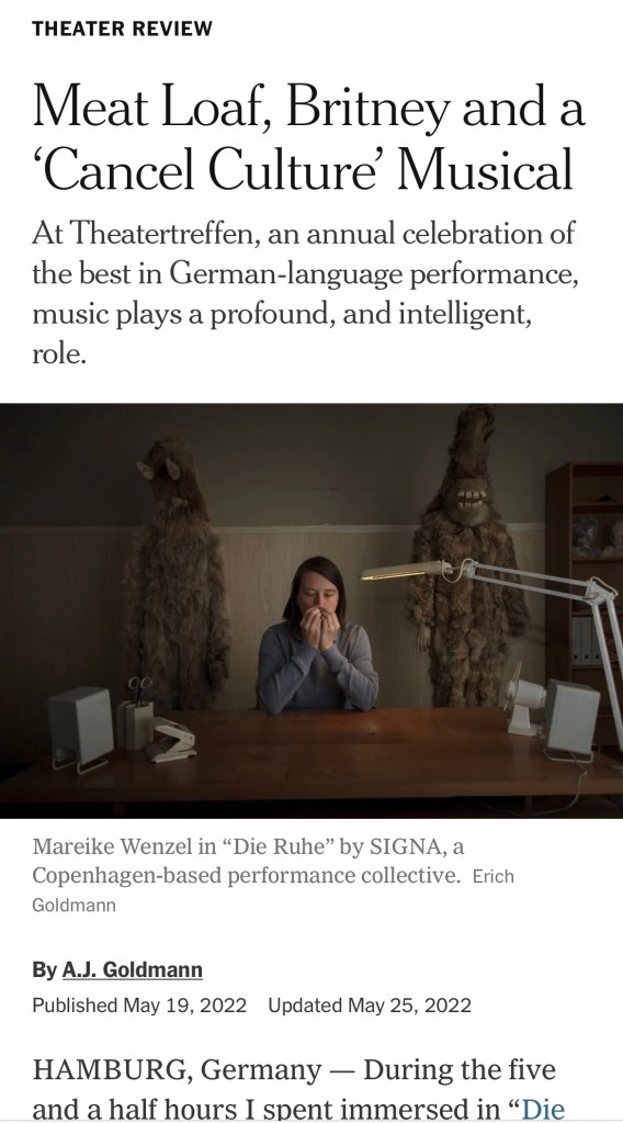 Mareike in the New York Times Review on „Die Ruhe“. The article can be found here.